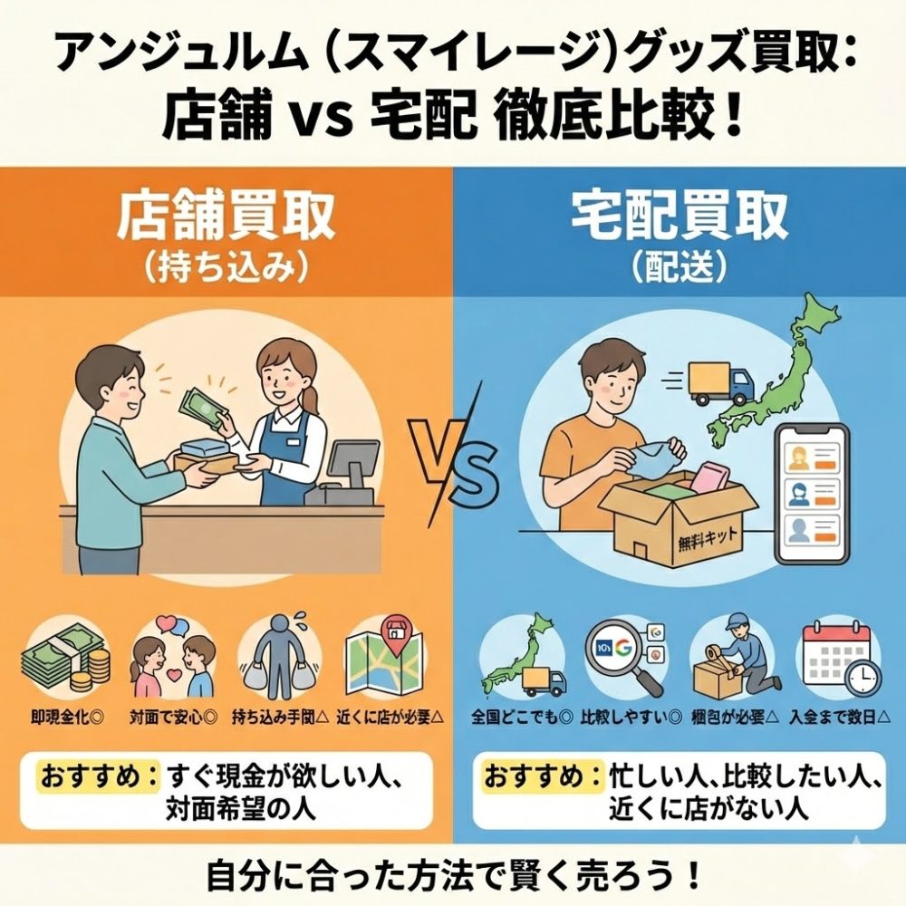 買取専門店でアンジュルムグッズを売る場合、「店舗買取」「宅配買取」があります。