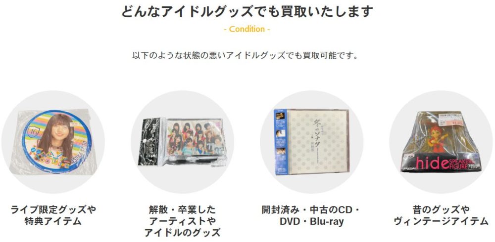 ※グッズ買取は一部のグループのみ。CD買取は全グループが対象。