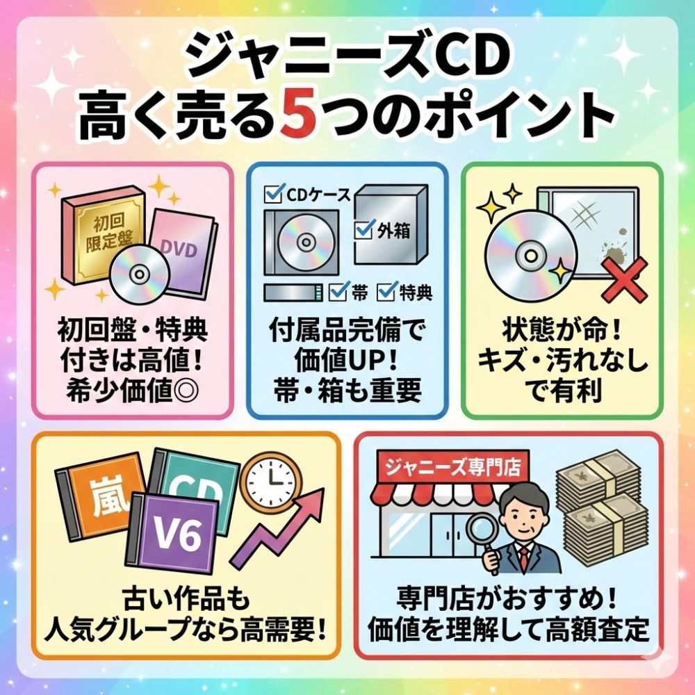 この記事では、ジャニーズのCDを高く売るための方法や、おすすめの業者、グループごとの買取傾向、査定のポイントなどを詳しく解説します。
