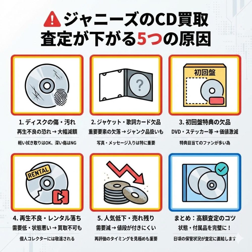 少しでも高く売りたい方は、「特典の有無」「ディスクの状態」「グループごとの傾向」を意識することが大切です。