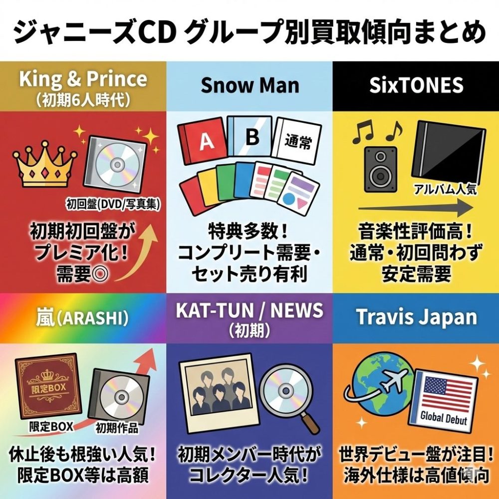 グループごとにCDの買取価格や需要は異なります。それぞれの特徴や市場の動きを把握しておくことで、売るタイミングや方法を判断しやすくなります。