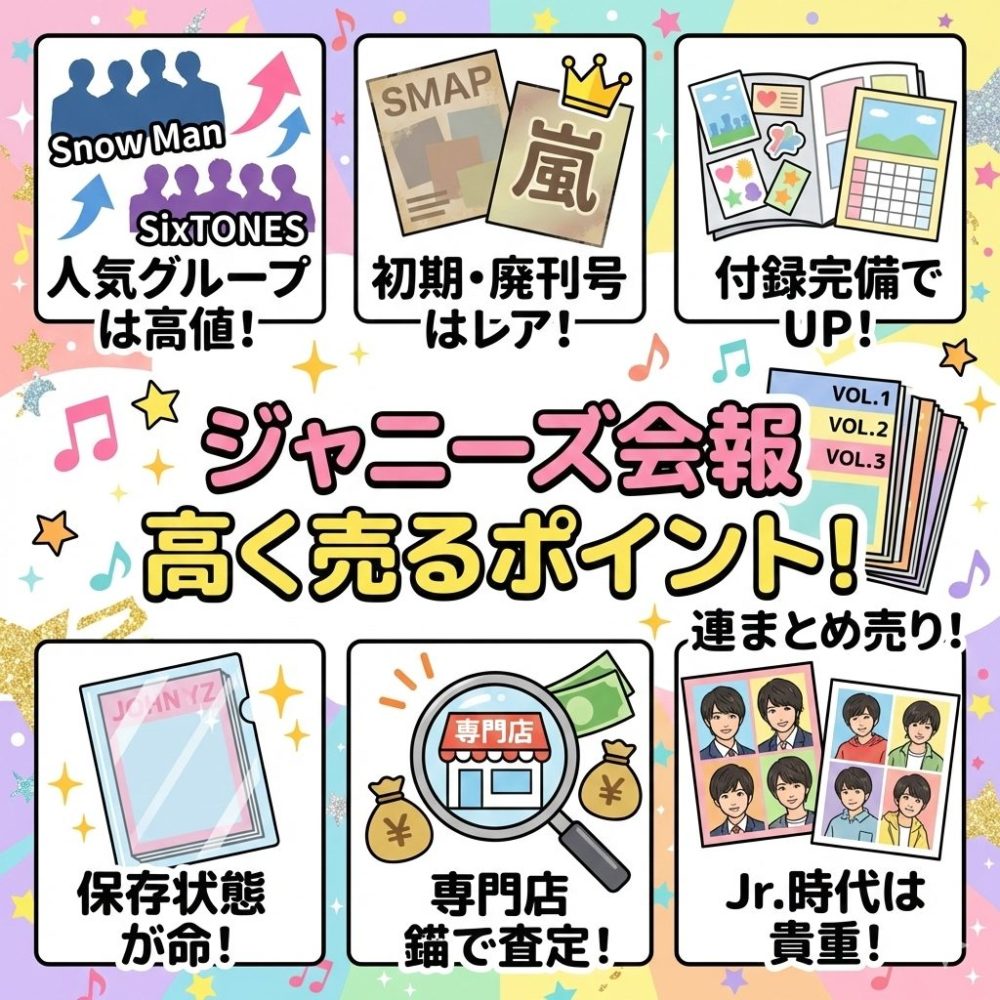 この記事では、ジャニーズの会報の買取について、高く売る方法や注意点、おすすめの買取店を詳しく解説します。