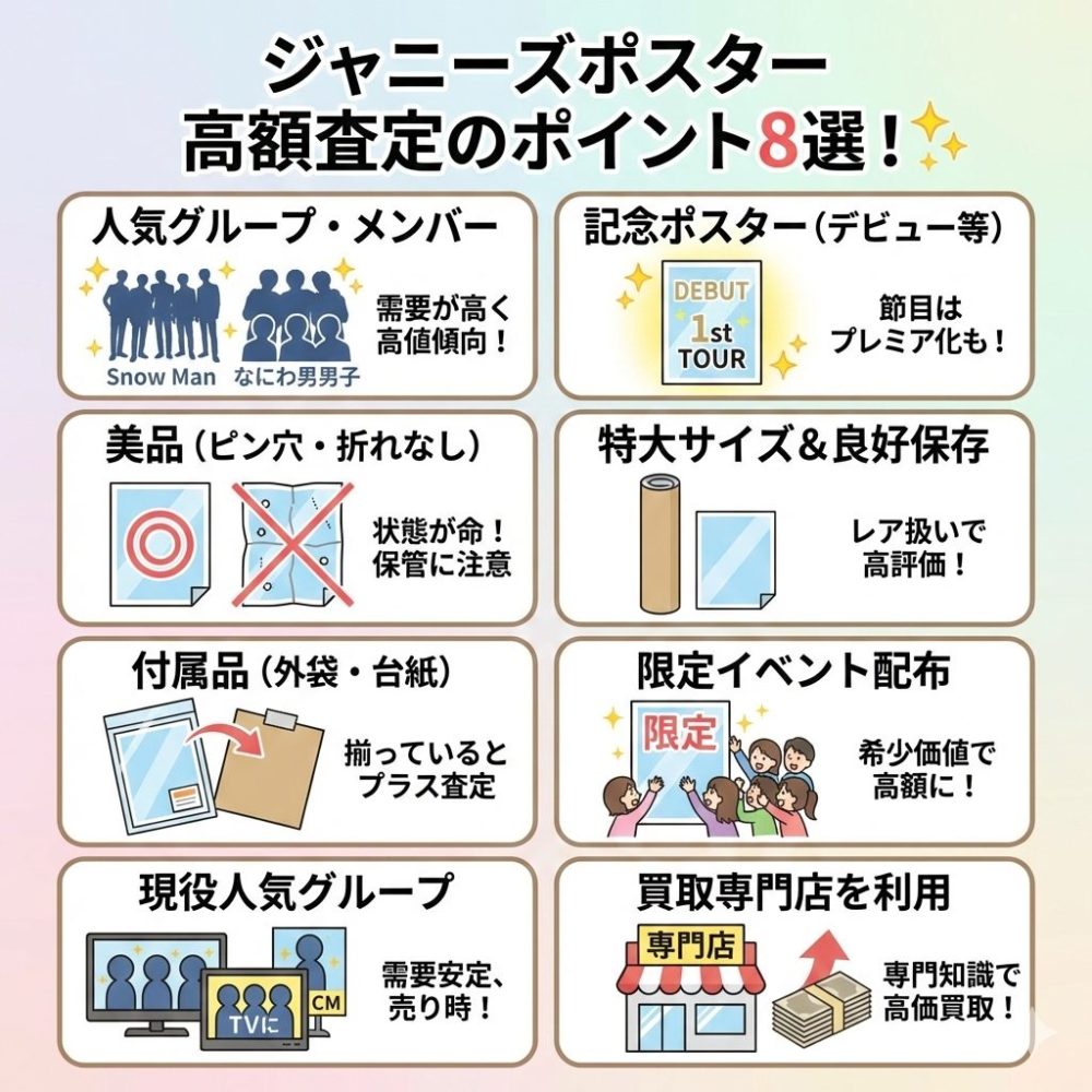 ジャニーズ(現スタエン・STARTO)のポスターは、ファンにとっては思い出の詰まった宝物。でも、手放すことを考えたときには、できるだけ高く売りたいものです。