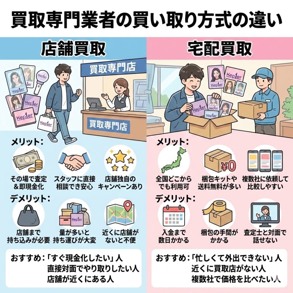 買取専門店でKep1er(ケプラー)グッズを売る場合、「店舗買取」「宅配買取」があります。