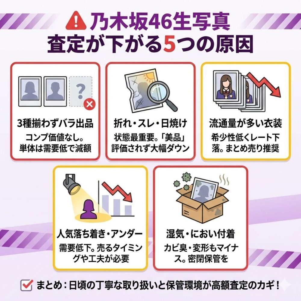 乃木坂46の生写真買取で査定が下がる原因