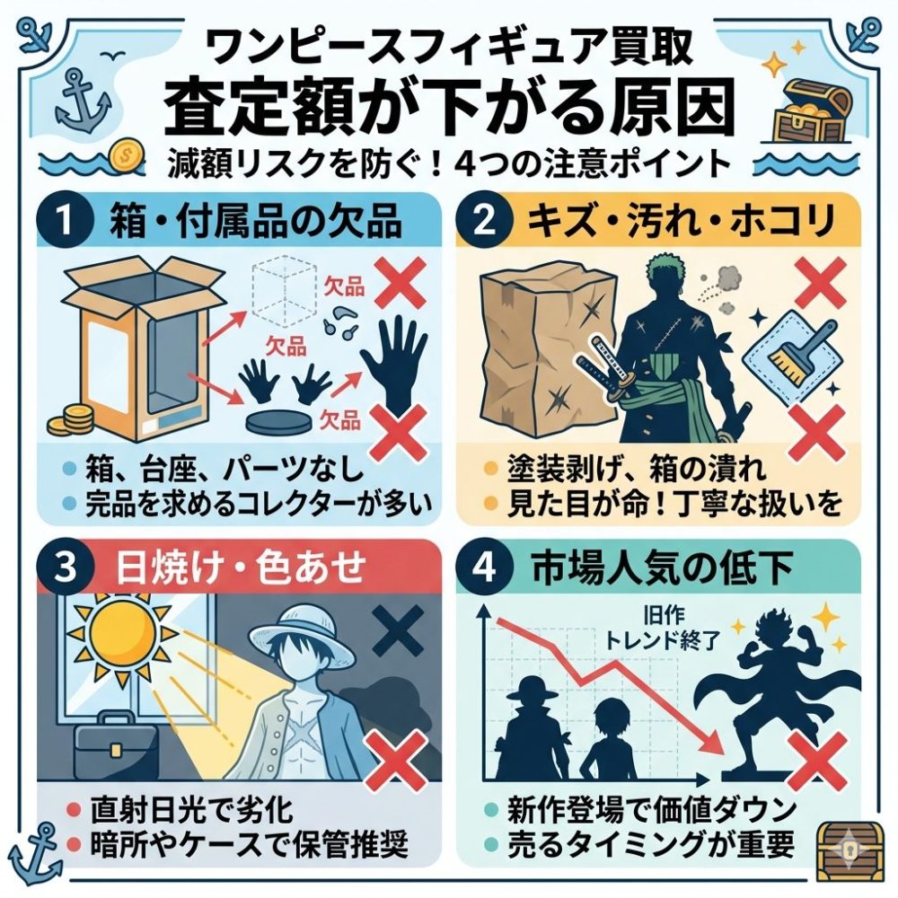 ワンピースのフィギュア買取で査定が下がる原因