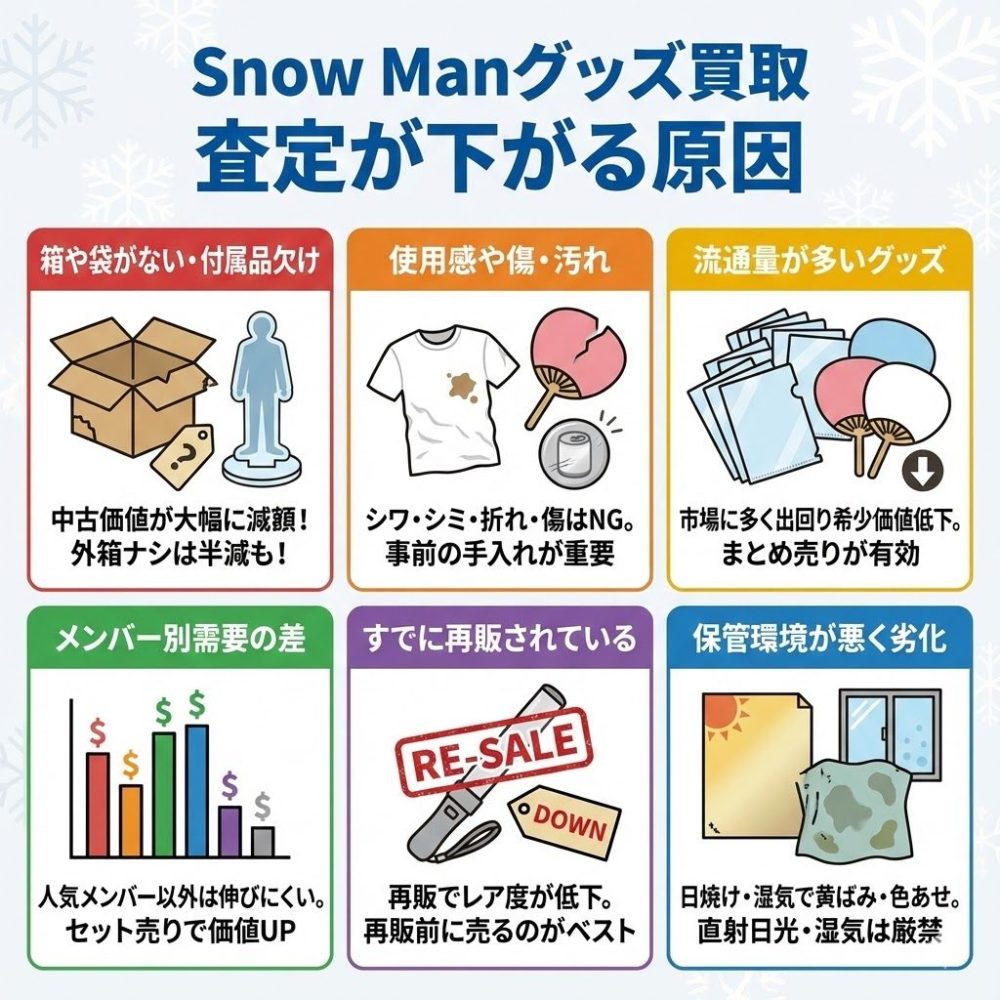 Snow Manグッズ買取で査定が下がる原因