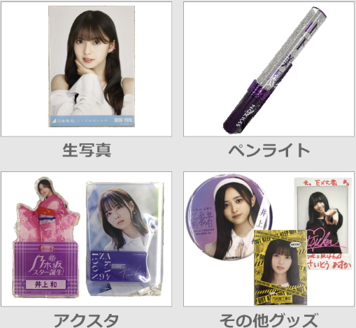 | 対応アイテム例 | 公式写真、CD、DVD、アクスタ、うちわなど |